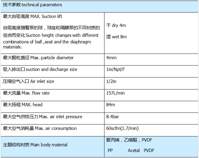 5、气动式隔膜泵材质多样性,且无转动部件,适用于各腐蚀性场合。