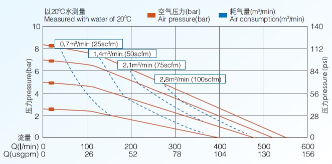 304气动隔膜泵的性能曲线