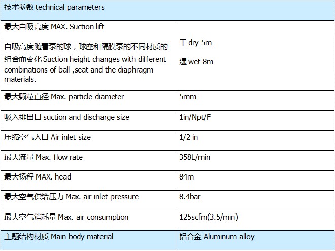 铝合金气动隔膜泵的型号表格